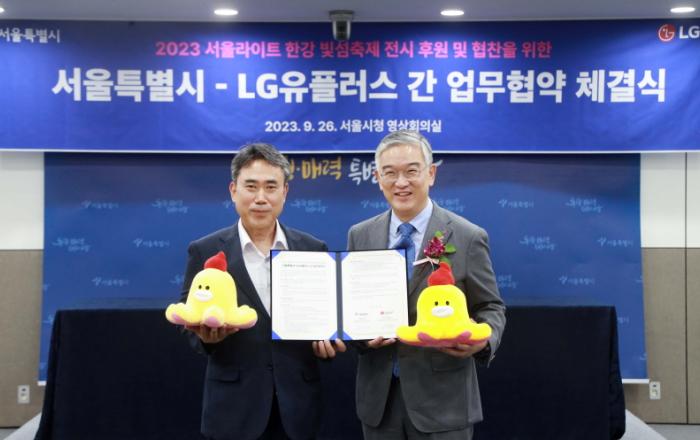 LG유플러스는 자사 대표 캐릭터 ‘무너’를 활용해 ‘2023 서울라이트 한강 빛섬축제(이하 빛섬축제)’에 참여한다고 2일 밝혔다. 이를 위해 LG유플러스와 서울시는 서울시청에서 ‘2023 서울라이트 한강 빛섬축제 전시후원 및 협찬을 위한 업무협약(MOU)