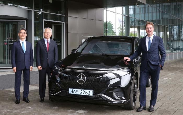 LG디스플레이가 메르세데스-벤츠와 프리미엄 차량용 디스플레이 사업 분야의 협업을 논의했다. LG디스플레이는 24일 서울 마곡 LG사이언스파크 LG디스플레이 연구동에서 ㈜LG 권봉석 부회장과 LG디스플레이 정호영 사장이 메르세데스-벤츠 그룹 올라 칼레니우스