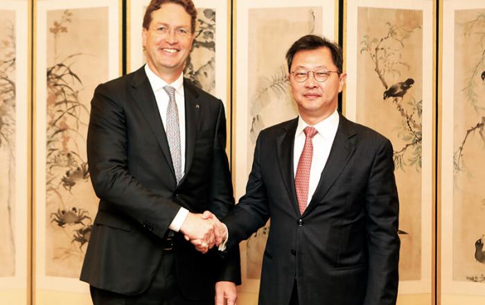 최재원 SK그룹 수석부회장이 메르세데츠-벤츠 그룹의 최고경영자(CEO)인 올라 칼레니우스 회장을 만나 사업협력 방안을 논의했다. SK그룹은 23일 최 수석부회장과 올라 회장이 양그룹을 대표해 서울 종로구 SK서린빌딩에서 면담을 갖고, 전기차 배터리와 티맵(TMAP)