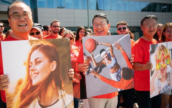 LG전자 이탈리아 법인의 임직원 약 100명이 현지시간 28일 조주완 사장이 참석한 가운데 밀라노 ‘지노 발레(Gino Valle)’ 광장에서 브랜드 슬로건 『Life’s Good(라이프스굿)』을 주제로 한 플래시몹 퍼포먼스를 펼쳤다. 이날 행사는