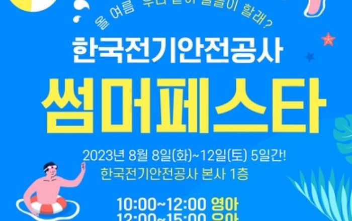 어린이들의 건강한 여름나기를 위한 물놀이 축제가 전북혁신도시 한국전기안전공사 앞마당에서 펼쳐진다. 한국전기안전공사는 오늘 8월 8일(화)부터 12일(토)까지 닷새 동안 전북혁신도시에 있는 본사에서 '썸머페스타(Summer Festa)' 행사를 개최한다. 지난해에