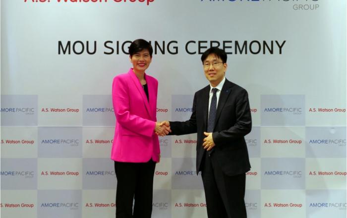 아모레퍼시픽그룹이 세계적인 유통 기업인 A.S. 왓슨(A.S. Watson) 그룹과 전략적 파트너십 강화를 위한 양해각서(MOU)를 체결했다. 아모레퍼시픽그룹의 이상목 대표와 A.S. 왓슨 그룹의 말리나 응아이(Malina Ngai) 아시아 &
