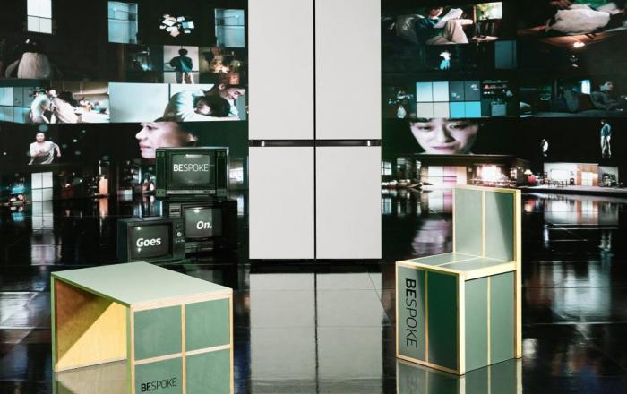 삼성전자가 절전 가전 ‘ 비스포크 냉장고 ’ 의 광고 제작 소품을 업사이클링한 아트 작품을 공개했다 . 삼성전자 비스포크 냉장고의 절전 철학을 담은 광고를 제작하는 것뿐 아니라 , 업사이클링 아