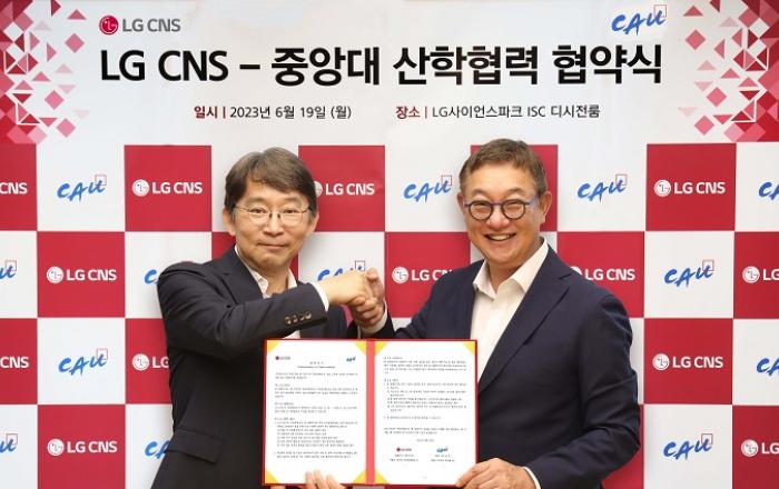 DX전문기업 LG CNS가 중앙대학교(이하 중앙대)와 손잡고 보안 인재 육성에 적극 나선다. LG CNS는 19일 서울시 마곡 LG사이언스파크에서 중앙대와 DX 전문인력 양성을 위한 ‘산학협력 협약’을 체결했다. 협약식에는 LG CNS 현신균 대표이사,