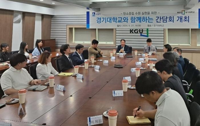수원시가 경기대학교와 '지구로운 캠퍼스' 조성을 위해 지난 27일 대학 관계자와 간담회를 가졌다. 경기대학교 제2공학관에서 열린 간담회에는 황인국 수원시 제2부시장, 청년청소년과장, 환경정책과장 등 관계 공무원과 최병정 경기대학교 교학부총장, 사회에너지시스템공학과