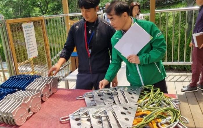산림청은 경상남도 진주시 월아산 산림레포츠단지에서 민간안전관리 전문가, 경남도청 등과 함께 일제 안전점검을 실시했다고 17일 밝혔다. 산림레포츠시설은 산악승마시설, 산악자전거, 행·패러글라이딩, 산악스키, 산악마라톤, 외줄이동시설, 로프체