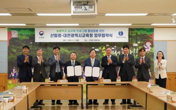 산림청은 대전광역시교육청과 늘봄학교 숲교육 프로그램 운영 활성화를 위한 업무협약을 체결했다고 13일 밝혔다. ‘늘봄학교’는 초등학교 정규수업 외에 학교를 중심으로 이루어지는 종합 교육프로그램으로 학교와 지역사회의 다양한 교육자원을 연계해 학생의