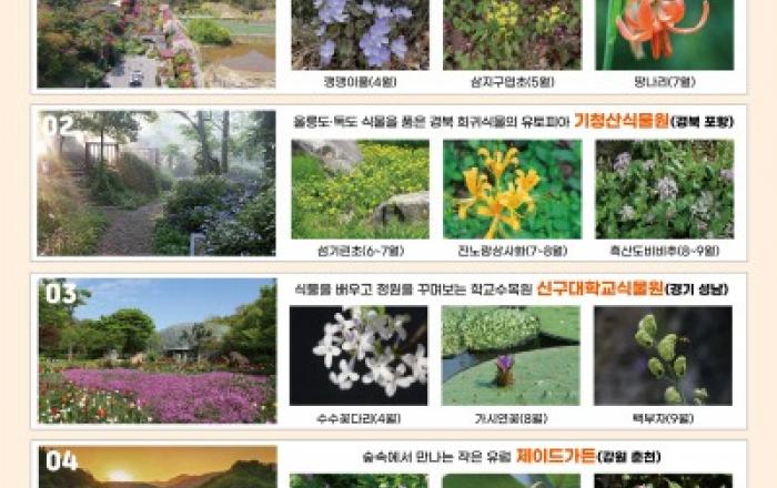 산림청은 사계절 내내 다양한 자연의 아름다움을 느낄 수 있는 ‘2024년에 꼭 가봐야 할 수목원 10선’을 선정했다고 14일 밝혔다. 수목원은 각양각색의 꽃과 나무들로 아름다운 풍경을 즐길 수 있어 여행과 데이트 코스로 인기가 높으며 자연