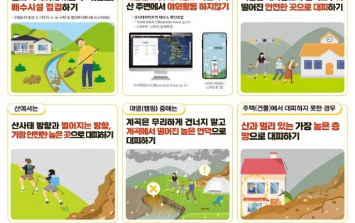 Q1) 장마철이 다가오는데, 우리 집 주변에도 산사태가 발생할까요? A1) 산림청이 제공하는 ‘산사태 위험지도’에서 내 집 주변의 산사태 발생 위험도를 확인하실 수 있습니다. Q2) 산사태 위험은 비가 얼마나 오느냐에 따라 계속 바뀌지 않나요?
