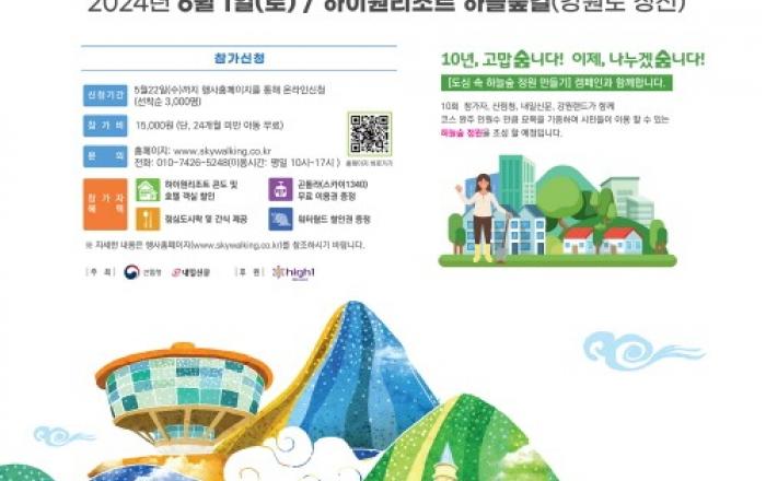 산림청은 오는 6월 1일 강원도 정선에서 개최되는 ‘제10회 하늘숲길 걷기축제’ 참가자 3,000명을 모집한다고 9일 밝혔다. ‘하늘숲길 걷기축제’는 산림청과 내일신문이 공동주최하고 하이원리조트가 후원하는 행사로 명품숲길로 지정된 강원도