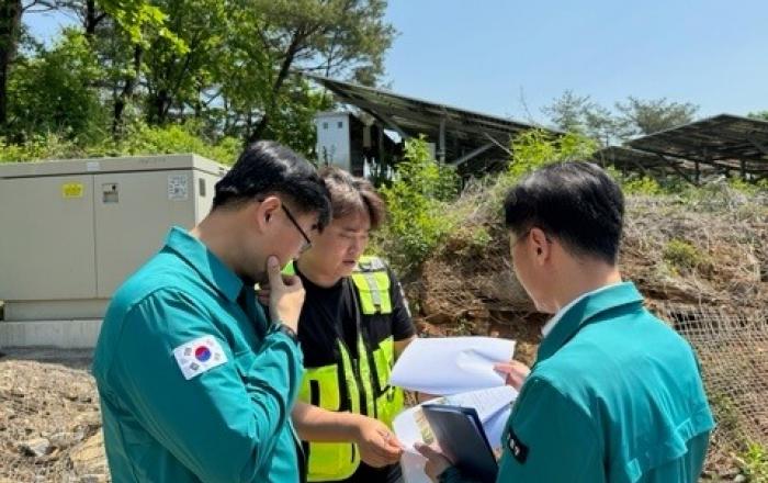 산림청은 강원도 영월군 태양광허가지를 방문해 산사태 대비 산지전용지의 재해방지 조치 현황 등을 점검했다고 10일 밝혔다. 특히 여름철 자연재난 대책기간(5.15.~10.15.)이 운영됨에 따라 영월군 부군수를 만나 산사태 복구 및 예방사업