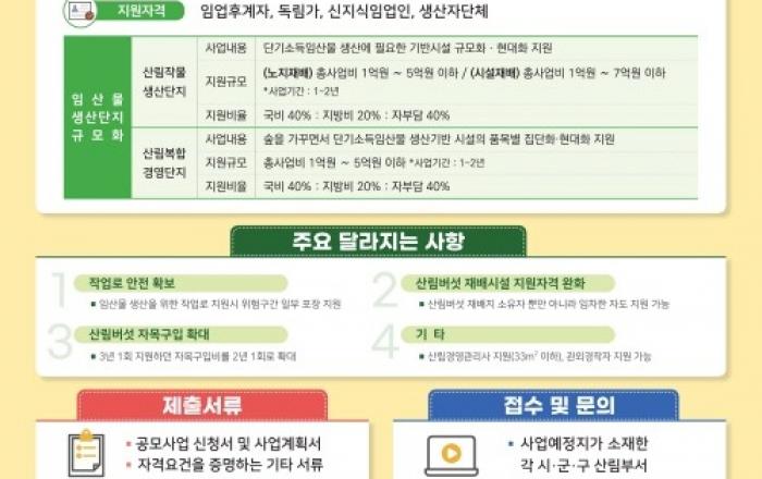 산림청은 오는 6월 21일까지 임산물 생산단지의 규모화·현대화를 지원하는 ‘2025년 산림소득사업’ 참여신청을 받는다고 22일 밝혔다. 지원자격은 임업후계자, 독림가, 신지식임업인 등 전문임업인과 생산자 중 약용·약초류, 산나물류, 버섯류