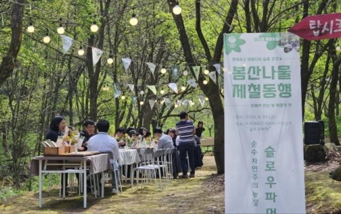 산림청은 한국임업진흥원과 함께 봄을 맞아 임산물 국가통합브랜드(K-FOREST FOOD) 지정임가인 충북 충주시 ‘슬로우파머’에서 ‘봄 산나물 미식여행’을 개최했다고 19일 밝혔다. ‘임산물 국가통합브랜드(K-FOREST FOOD)’는 청