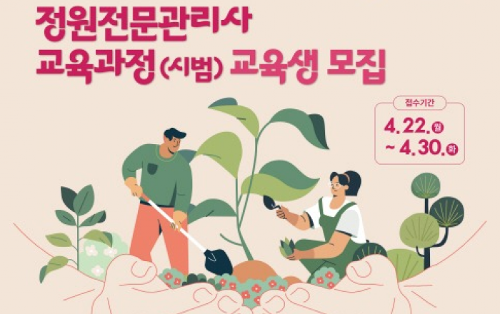 산림청은 오는 4월 30일까지 ‘2024 정원전문관리사 교육과정’에 참여할 교육생을 모집한다고 22일 밝혔다. 정원전문관리사 교육과정은 정원소재·조성·관리·운영 등에 대한 전문인력을 양성하기 위해 마련됐으며 오는 5월 11일부터 11월 1