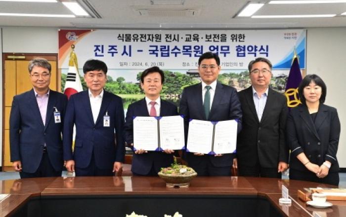 산림청 국립수목원은 진주시와 오늘(20일) 진주시청에서 업무협약을 체결했다. 본 업무협약은 국립수목원이 추진하는「식물 거버넌스 프로젝트」의 일환으로 지역 기반 식물자원 보전?복원 및 이용 활성화를 위해 국가(국립수목원)와 지자체(진주시)가 상호