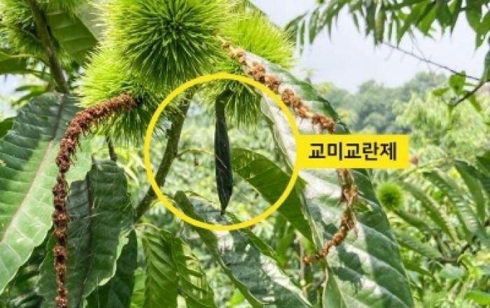 산림청 국립산림과학원은 국제 학술지 ‘Insects’에 ‘교미교란제를 이용한 밤 해충 복숭아명나방의 친환경 방제 기술 연구’ 논문을 발표하였다. 복숭아명나방은 밤 종실을 가해하여 상품 가치를 하락시키는 밤의 주요 해충이다. 이를 방제