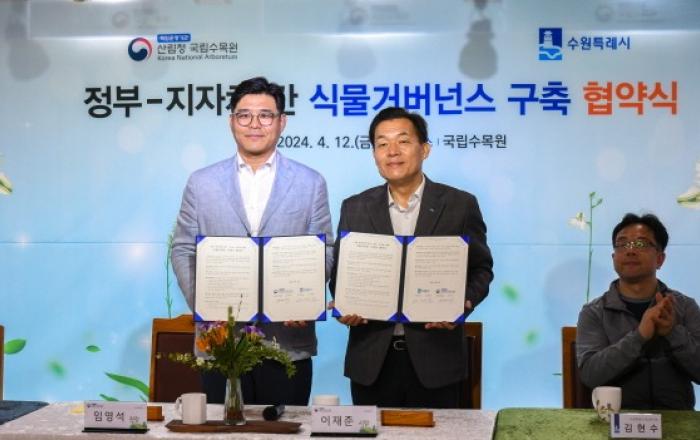 산림청 국립수목원은 수원시와 지난 12일(금) 식물유전자원의 전시·보전·교육을 위한 업무협약을 체결했다. 본 협약을 통해 국립수목원과 수원시는 ▲식물유전자원 보전을 위한 공동연구, ▲산림생물자원 교환 및 지원, ▲수목원·정원 조성에 관한 기술