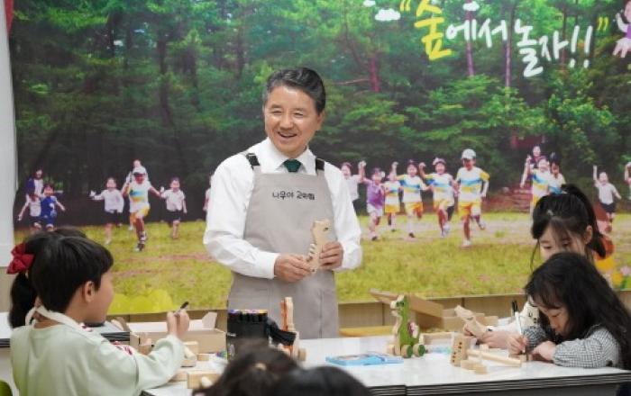 산림청은 대전 대흥초등학교에서 남성현 산림청장이 ‘늘봄학교’ 일일교사로 참여해 목공체험 숲교육을 진행했다고 15일 밝혔다. 늘봄학교는 초등학교 정규수업 외에 학교와 지역사회의 다양한 교육자원을 연계해 학생의 전인적 성장과 인지발달을 지원하