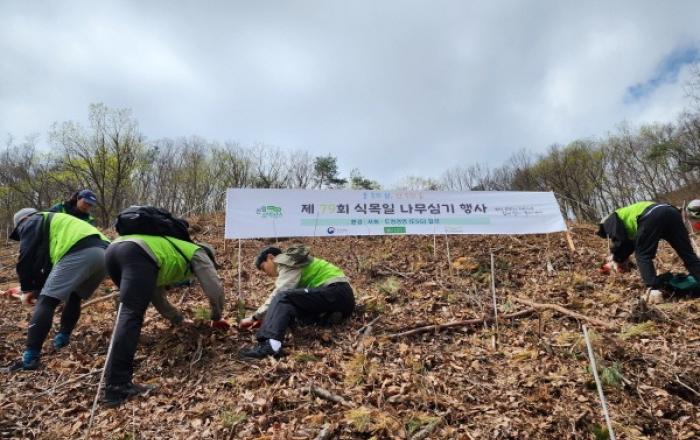 산림청 중부지방산림청은 4월 5일 진천군 문백면 은탄리 소재 국유림에서 ‘숲 속의 삶, 삶 속의 숲’ 제79회 식목일을 기념하여 봄철 나무심기 행사를 추진하였다. 이번 행사에는 산림의 경제적·공익적 가치 증진과 환경·사회·투명경영(ESG) 협력을 위하여 산림청,