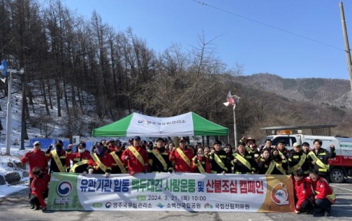 산림청 영주국유림관리소는 3월 21일 봄철 산불조심 기간을 맞아 소백산국립공원 일원에서 등산객 등을 대상으로 유관기관 합동 백두대간 사랑 운동 및 산불조심 캠페인을 실시했다. 이날 캠페인은 산불재난 국가위기경보가 주의로 격상되고 최근 관내 산불 발생 건수가 증가