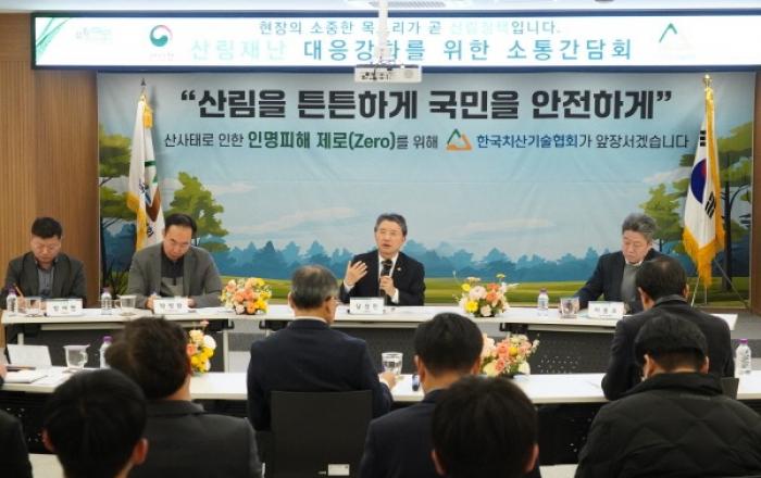 산림청은 한국치산기술협회를 방문해 최병암 회장을 비롯한 임직원들과 함께 산사태 예방·대응체계 강화와 공공기관으로서 역할에 대해 논의하는 간담회를 개최했다고 22일 밝혔다. 이번 간담회에서는 △산사태 예방(사방) 시설의 전문적·효율적 관리방