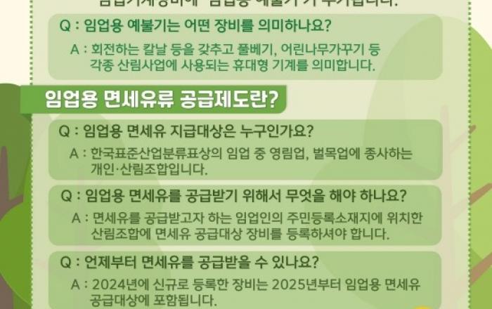 산림청은 ‘농·축산·임·어업용 기자재 및 석유류에 대한 부가가치세 영세율 및 면세 적용 등에 관한 특례규정 시행규칙’이 오는 4월 1일부터 개정ㆍ시행됨에 따라 임업용 면세유류 공급 대상으로 ‘임업용 예불기’가 추가된다고 25일 밝혔다. 임