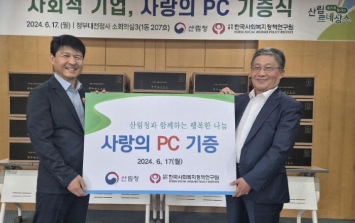 산림청은 정부대전청사에서 컴퓨터를 비롯해 총 239대의 전산기기를 사회적기업인 (사)한국사회복지정책연구원에 무상으로 기증하는 ‘사랑의 컴퓨터 기증행사’를 가졌다고 17일 밝혔다. 기증 품목은 △데스크톱컴퓨터 107대 △모니터 68대 △프린