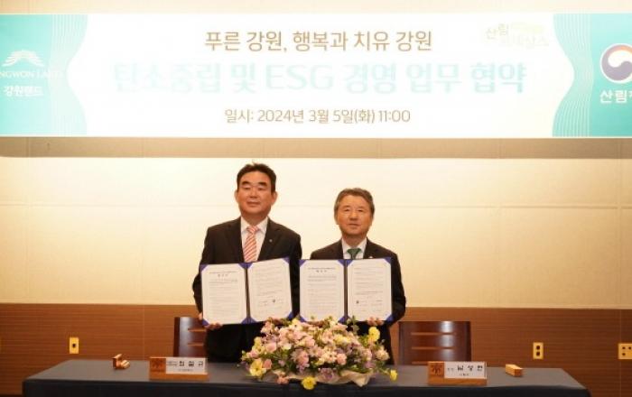 산림청과 강원랜드는 5일 강원랜드 산림힐링재단에서 ‘환경·사회·투명경영(ESG) 실천 업무협약’을 체결하여 도박·알콜·게임 등 행위중독 예방을 위한 산림치유 협력을 강화한다고 밝혔다. 이번 협약을 통해 강원랜드 산림힐링재단이 운영하는 ‘하