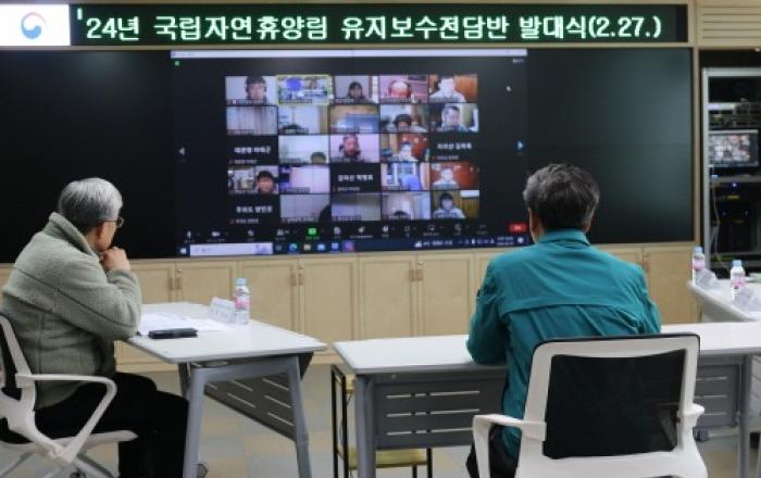 산림청 국립자연휴양림관리소는 2월 27일, 2024년 국립자연휴양림 유지보수전담반 발대식을 열고 본격적인 활동을 시작했다. 국립자연휴양림관리소의 유지보수전담반은 전기, 건축, 굴삭기 등 관련 자격증 소지자 또는 실무 경험이 있는 199명의 직원