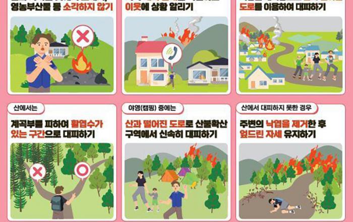 행정안전부는 건조하고 강한 바람이 부는 봄철로 접어들면서 산불 발생 위험이 높아지고 있어 예방을 위한 각별한 관심과 실천을 요청했다. 2014년부터 2023년까지 최근 10년 동안 산불은 한 해 평균 567건 발생했고, 이 산불로 여의도 면적(290ha)의 14배