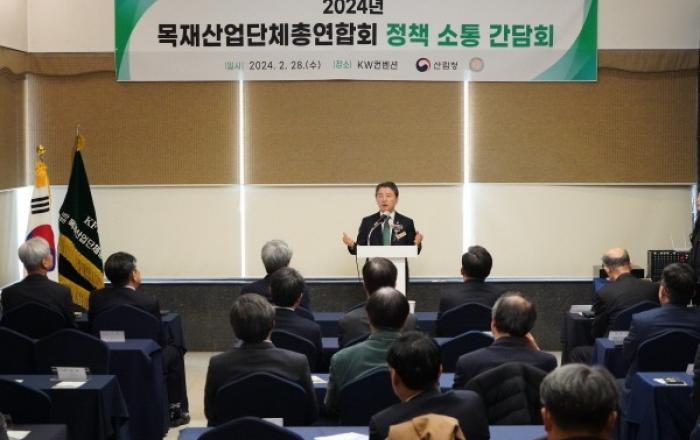 산림청은 28일 대전 케이더블유(KW)컨벤션에서 목재산업단체총연합회 등 26개 단체가 참석한 가운데 목재산업의 활성화를 위한 소통간담회를 개최했다고 밝혔다. 목재산업은 매출액 48조 원, 종사자수 17만여 명 규모로 임업 분야의 핵심적인