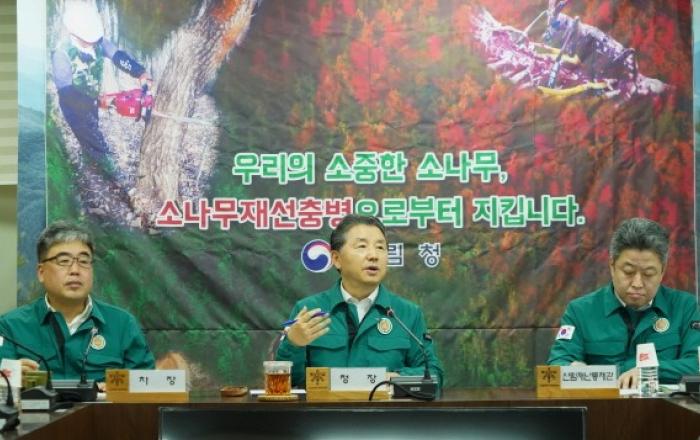 산림청은 19일 정부대전청사에서 산림청장 주재로 국립산림과학원, 한국임업진흥원과 함께 소나무재선충병 관련 긴급대책회의를 개최했다고 밝혔다. 이날 긴급대책회의에서는 ▲ 특별방제구역 추가 지정 등 예찰강화 및 총력방제 ▲ 현장여건을 고려한 혼