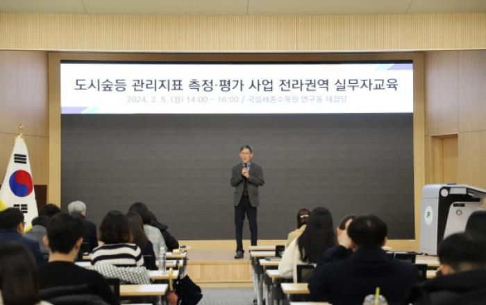 산림청은 5일 국립세종수목원에서 전라도 권역(광주, 전북, 전남) 지방자치단체 담당자를 대상으로 도시숲·가로수 관리지표 측정·평가실무교육을 실시했다고 밝혔다. ’23년부터 시작된 ‘도시숲 관리지표 측정ㆍ평가사업’은 지방자치단체에 조성된 도