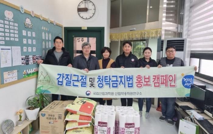 산림청 국립산림과학원 산림약용자원연구소는 5일(월) 설 명절을 맞아 경북 영주에 위치한 영풍장애인주간복지센터를 방문하여 위문품을 전달했다고 밝혔다. 산림약용자원연구소는 2016년 경북 영주시 풍기읍에 개소한 이래로 도움이 필요한 이웃