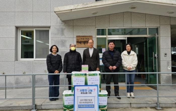 남부지방산림청 양산국유림관리소는 설 명절을 앞두고 양산소재 사회복지시설(애육원)을 방문하여 불우이웃돕기 성금을 전달했다. 양산국유림관리소에서는 매년 어려운 저소득 가정과 사회복지시설 등을 직접 찾아 위문품과 전 직원이 모금한 모금액을 전달해 더불어 행복한 사회를