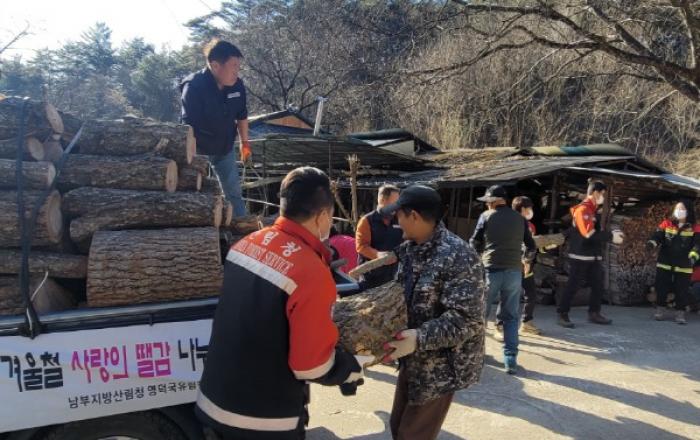 영덕국유림관리소는 차가운 겨울을 맞이하여 어려운 이웃에게 따뜻한 온기를 전달하고자 이달 4일부터 "사랑의 땔감 나누기 행사"를 추진한다고 밝혔다. 대상자는 영양군 내 읍ㆍ면에서 추천받아 홀로노인, 기초생활 수급자 등 20가구, 가구당 약 1㎥땔감을 지원하