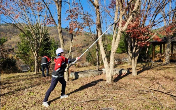 중부지방산림청은 숲가꾸기 기간을 맞이하여 21일 공주시 봉정나래 도시숲에서 ‘숲가꾸기 1일 체험행사’를 실시했다고 밝혔다. 이날 행사는 전 직원이 참여하여 봉정나래 도시숲의 수목에 비료주기, 어린나무 가지치기, 수형조절 등을 체험하며 도시숲의 생육 개선과