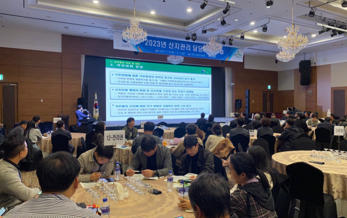 산림청은 11월 16일부터 17일까지 전라남도 여수시에서 산림청, 지자체, 관련 협회 등 관계자 410여 명이 참석하는 ‘전국 산지관리 담당자 연수회’을 개최하였다. 연수회에 참석한 전국 산지관리 담당공무원들은 국민공모제 등을 통해 발굴되