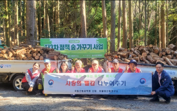 산림청 국립산림과학원 난대·아열대산림연구소는 9일(목), 숲가꾸기 등 산림사업 과정에서 발생한 부산물 및 미이용 산림자원을 무상으로 지원하는 「사랑의 땔감 나누기 행사」를 개최하였다고 밝혔다. 서귀포시 내 독거노인 가정 및 복지시설
