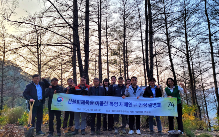 산림청 국립산림과학원은 작년 9월 조성했던 울진 산불 피해 지역의 복령 시범재배 연구지에서 산불 피해 소나무를 활용해 1년 만에 복령 생산에 성공했다고 밝혔다. 복령은 고사한 소나무 뿌리에서 영양분을 공급받아 자라는 버섯으로 시범재배