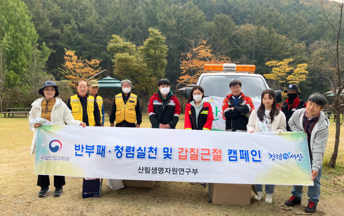 산림청 국립산림과학원 산림생명자원연구부는 26일(목), 가을철 산불조심기간을 맞아 수원국유림관리소와 군포시 수리산 일대에서 실시한 산불예방 및 청렴 캠페인을 성공적으로 마무리했다고 밝혔다. 이날 주요 등산로 주변 쓰레기 수거 등 산림
