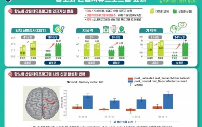 산림청은 국·공립 치유의 숲에서 운영되는 ‘항노화 산림치유 프로그램’이 노인의 인지기능을 향상시키고 우울감을 개선하는 효과가 있다고 10일 밝혔다. ‘치매예방 산림치유 항노화 표준 프로그램’은 전국 치유의 숲에서 운영중인 산림복지 서비스이다.