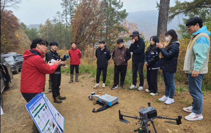 산림청 국립산림과학원은 10월 26일(목), 홍천 가리산 선도산림경영단지 산림순환경영모델림에서 산림자원조사의 효율성을 높이기 위해「라이다 기반 디지털 산림자원정보 구축 현장시연회」를 개최하였다고 밝혔다. 국립산림과학원은 3D 레이저스캐너 장비인