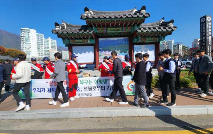 산림청 양산산림항공관리소는 27일(금) 통도사 일원에서 가을철 산불기간을 맞아 산불예방 캠페인을 실시했다. 이날 캠페인에서는 통도사를 찾는 등산객과 사찰신도 및 탐방객들에게 산불예방의 중요성과 산불 발생 시 행동요령 및 안전사항 전파 등 산불예방 홍보물을 배부하