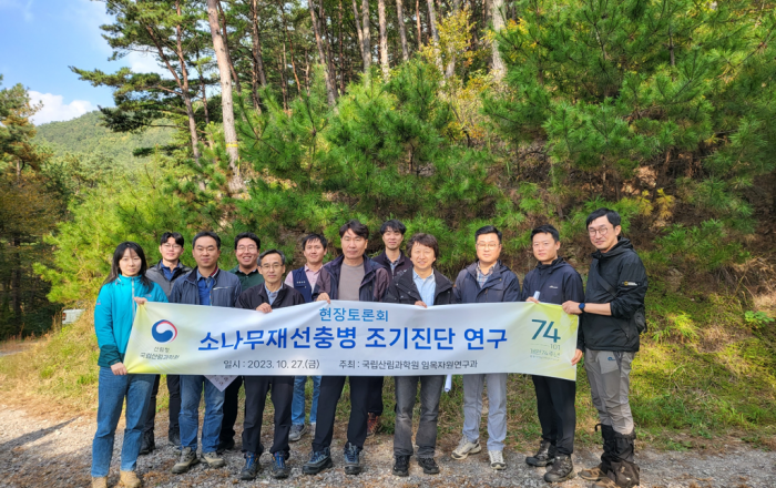산림청 국립산림과학원은 지난 27일(금), 진주시에 위치한 소나무 시험림에서 소나무재선충병 반응 특이 소나무 유전자를 이용한 조기진단 연구 현장토론회를 개최했다고 밝혔다. 이번 현장토론회에서는 소나무재선충병 예방 및 관리 관계자들이 모인 가운데