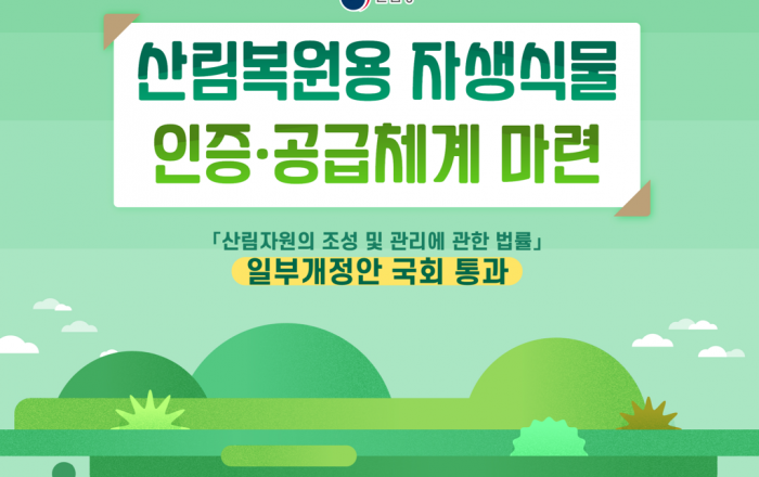 산림청은 산림복원지 사후 모니터링 기관의 범위 확대, 산림복원용 자생식물 인증 및 공급체계 마련 등을 내용으로 한 「산림자원의 조성 및 관리에 관한 법률」 일부개정안(최춘식 의원 대표 발의)이 6일 국회 본회의를 통과했다고 밝혔다. 그동안 자생식물