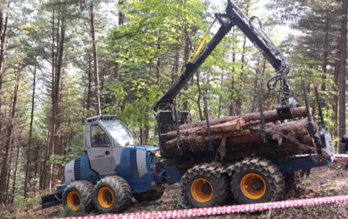 산림청 국립산림과학원 산림기술경영연구소는 11일(수), 가리산선도산림경영단지(강원도 홍천)에서 급경사지의 목재수확 작업안전을 확보하기 위해 「경사지 차량계 임업기계 활용 목재수확」 현장토론회를 개최했다. 이번 현장토론회는 산림청 소속