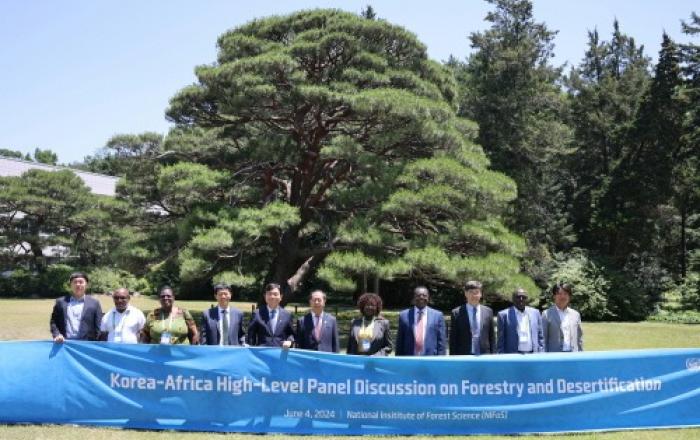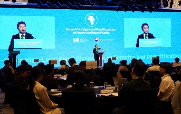 산림청은 서울 제이더블유(JW)메리어트 동대문스퀘어에서 한국-아프리카 산림장관 등이 참석한 가운데 ‘미래 숲, 지속가능한 산림을 위한 우호 증진’을 주제로 사막화 방지 산림협력 고위급 패널토론을 개최했다고 3일 밝혔다. 이번 토론은 유엔사