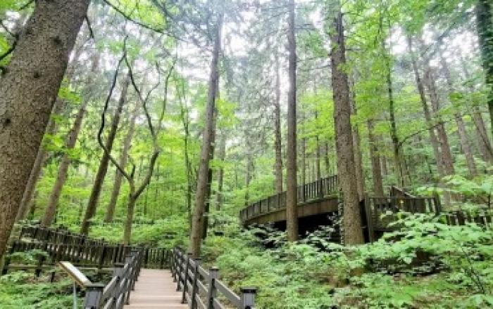 산림청 국립자연휴양림관리소는 4일 전국 45개 국립자연휴양림 가운데 숲길이 잘 조성돼 산책이나 등산하기 좋은 휴양림을 소개했다. 덕유산자연휴양림은 1931년경 조성된 독일가문비나무숲이 빼어나다. 가슴높이 지름이 최고 79㎝에 이르는 국내