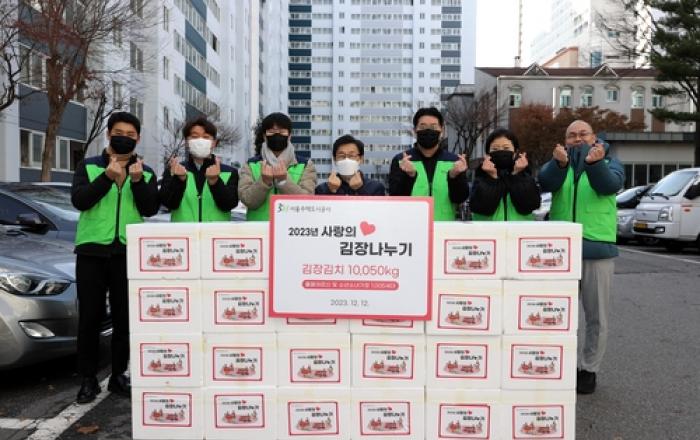서울주택도시공사(SH공사)가 홀몸 어르신 등 공사가 관리하는 공공주택에 거주하는 취약계층 세대를 위해 겨울맞이 김장김치 나눔을 진행했다. SH공사는 12일 서울 강남구 수서6단지에서 '2023년 사랑의 김장나누기 전달식'을 개최하고, 공공주택 거주 취약계층 1,00